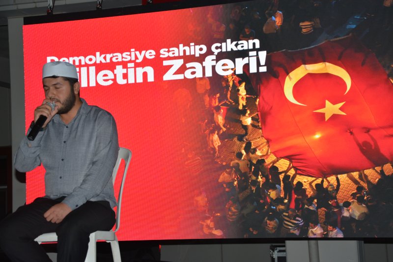 15 Temmuz anısına Kuran’ı Kerim tilavetleri, şiirler, slaytlar ve Sn. Cumhurbaşkanımız Sn. Recep Tayip ERDOĞAN’nın Konuşmalarından sonra İlçemiz sivil toplum kuruluşu ve Belediye Başkanlığımız tarafından çeşitli ikramlarının dağıtılması ve 00:13'te salaların okunmasına kadar devam etti.